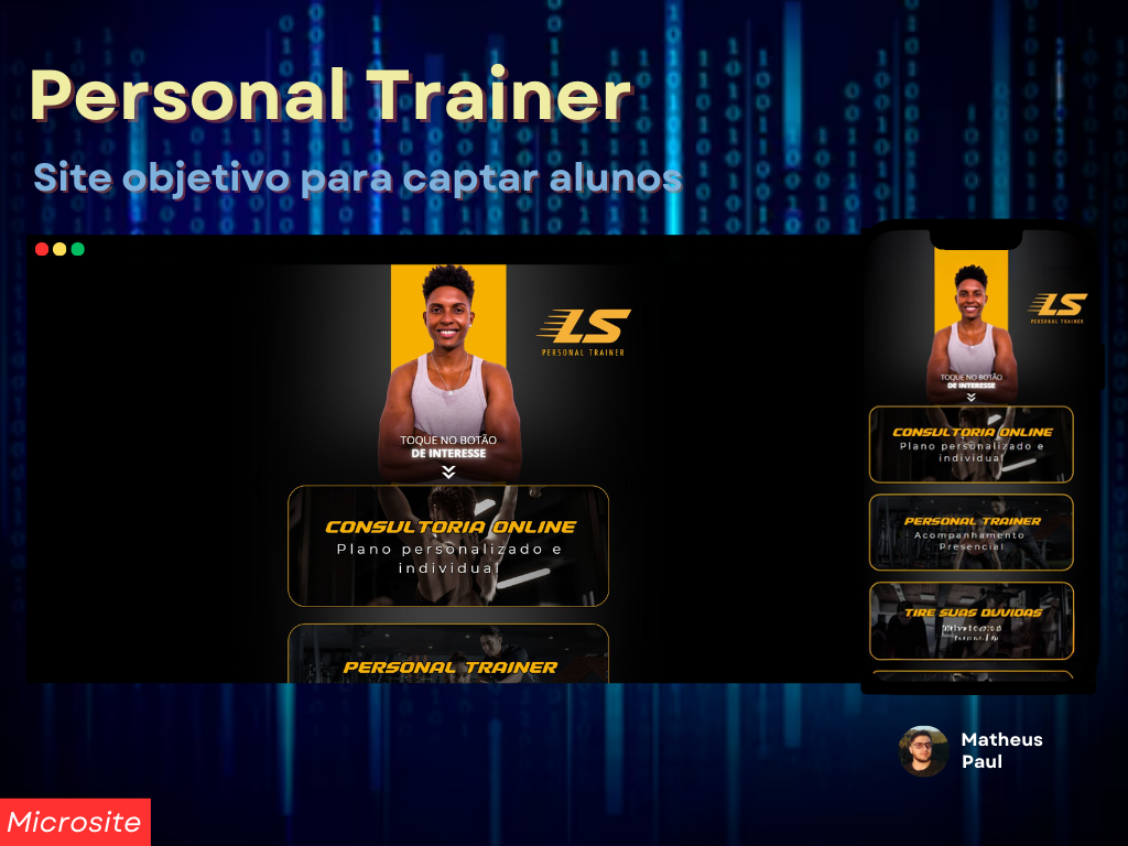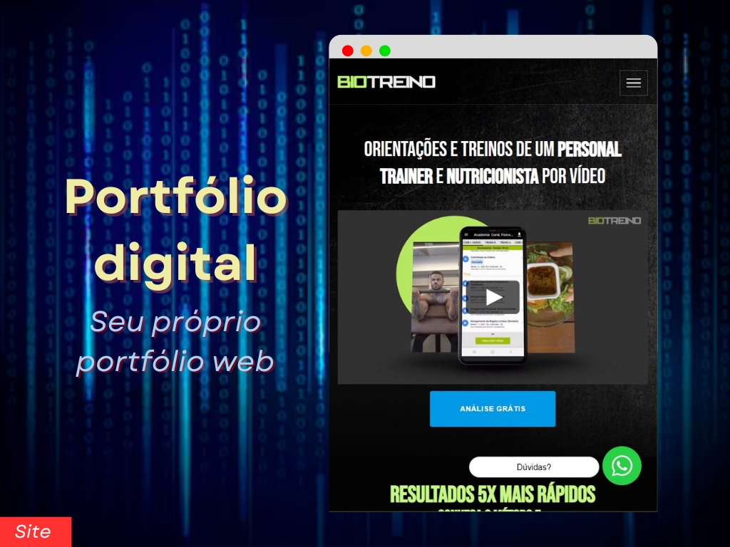 Portfólio digital para Freelancer, Músico, Profissionais da saúde, Advogado, Personal Trainer, etc.